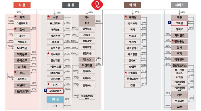| ▲롯데그룹 계열사 지분구조 (자료 = 롯데지주 제공) |