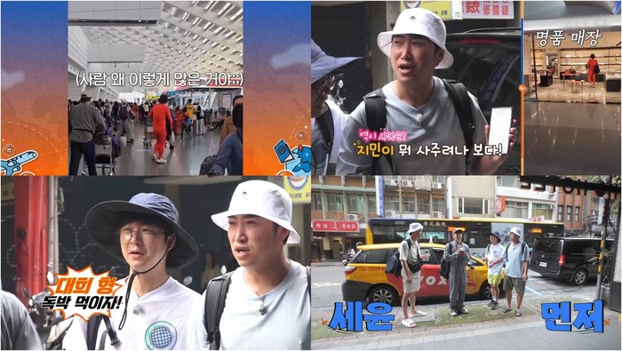 결국 김준호는 이를 수용하고, 곧장 ‘전신 레깅스’이자 강렬한 레드 컬러의 쫄쫄이 패션으로 환복한다. 또한 다음 날 아침에도 그는 쫄쫄이 패션으로 대만 타오위안 공항에 출몰(?)한다. 파격 패션에도 그는 파워당당하게 ‘구X’ 매장까지 활보하고, 김준호의 벌칙 수행 영상을 접한 멤버들은 “(김)지민이 뭐 사다 주려나 보다~”라며 명품숍에 들린 김준호의 행동에 대해 핑크빛 추측을 내놓는다.