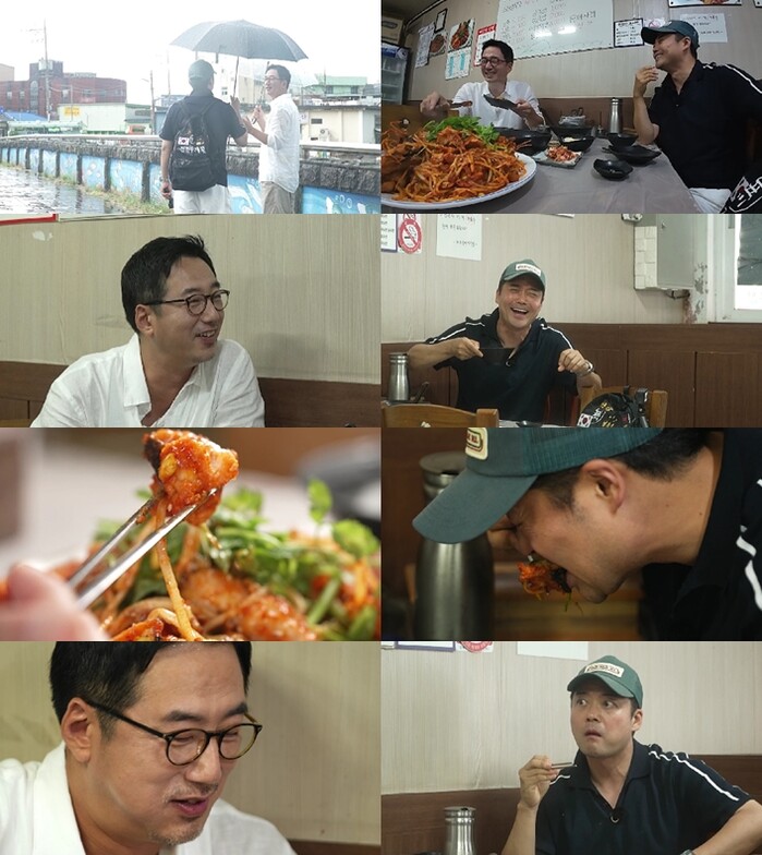 이날 전현무는 ‘제주 사위’ 정호영 셰프와 헤어진 뒤, 다음 게스트를 만나러 가면서 “이 형은 미식가 이미지가 1도 없다. 그래서 가자고 하는 식당도 반신반의하다”며 ‘둔식가 형’ 류승수를 소개한다. 전현무와 반갑게 인사를 나눈 류승수는 곧장, “지금 가는 식당은 도민들끼리 서로 안 가르쳐 주려고 하는 곳”이라고 귀띔해 궁금증을 자아낸다. 하지만 식당 앞에 도착한 전현무는 “메뉴가 아귀찜?”이라며 의아함과 불신을 쏟아내더니, “이 형이 맛을 좀 모르나 싶다”며 고개를 절레절레 흔든다.