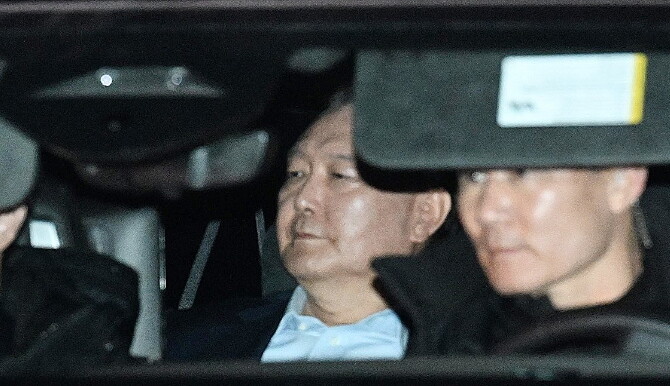▲ 윤석열 대통령이 지난 15일 오후 경기 과천시 공수처에서 조사를 마치고 서울구치소로 이동하고 있다. [사진=연합뉴스] |