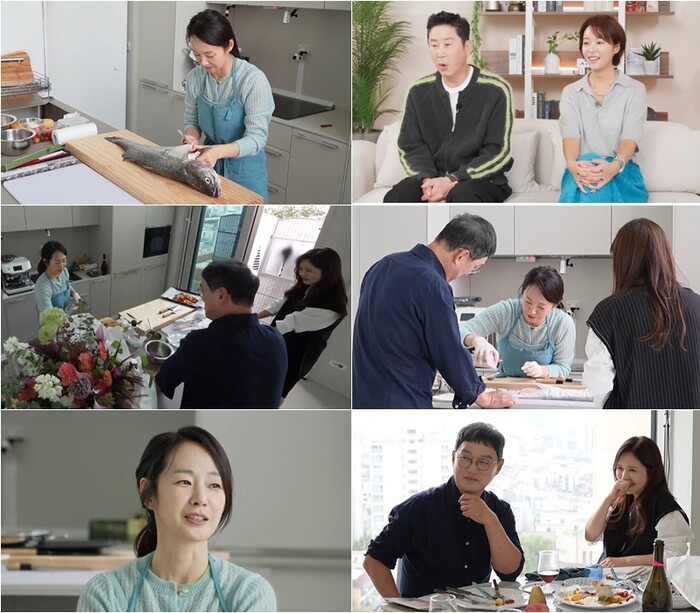 | ▲명세빈이 '절친' 고명환, 임지은 부부를 집으로 초대해 특별한 한 끼를 대접하며 이야기꽃을 피운다. [사진='솔로라서' 방송 갈무리] |