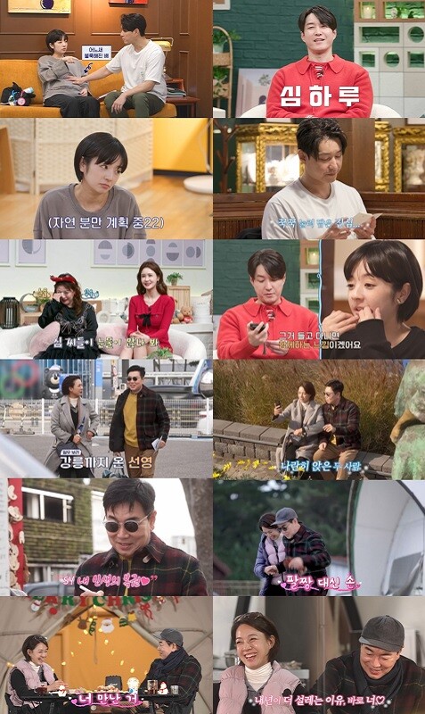 달달한 분위기 속, 두 사람은 재래시장으로 향했다. 여기서도 시민들은 “부부시냐?”, “잘 어울린다”라고 열띤 응원을 보냈다. 김일우는 “내가 봐도 선영 씨랑 같이 서 있으면, 부부라고 오해할 것 같다는 생각이 들었다”며 슬쩍 웃었다. 시장에서 대게와 각종 먹거리를 사온 두 사람은 김일우가 사전에 예약한 캠핑장으로 갔다. 캠핑을 거의 해본 적이 없다는 박선영을 위해 김일우는 크리스마스트리 장식을 꾸미는 것은 물론 과일을 듬뿍 넣은 따끈한 뱅쇼를 만들었다. 박선영 또한 “오빠 생각이 나서 하나 챙겨왔다”며 김일우에게 선글라스를 건넸다. 김일우는 박선영과 함께 만든 키링에 이어 선글라스도 ‘커플템’처럼 장착한 채 행복해했다. 크리스마스 분위기가 물씬 나는 가운데, 김일우는 박선영이 끓인 된장찌개를 먹으면서 “너무 맛있다!”며 ‘엄지 척’을 했다. 이후, 양갈비와 대게 살을 직접 발라 접시에 놔줬다. 박선영은 다정한 김일우의 모습에 “오빠 많이 늘었다”, “왜 오빠가 장가를 못 갔지?”라며 폭풍 칭찬했다. 두 사람의 꽁냥꽁냥 모드에 ‘스튜디오 멘토군단’은 “식장은 여기가 먼저 잡아야겠다. 박현호를 추월하겠다”며 설레어 했다.
