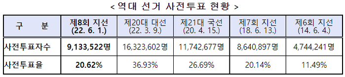 | ▲ 역대 선거 사전투표 현황. [중앙선거관리위원회 제공] |