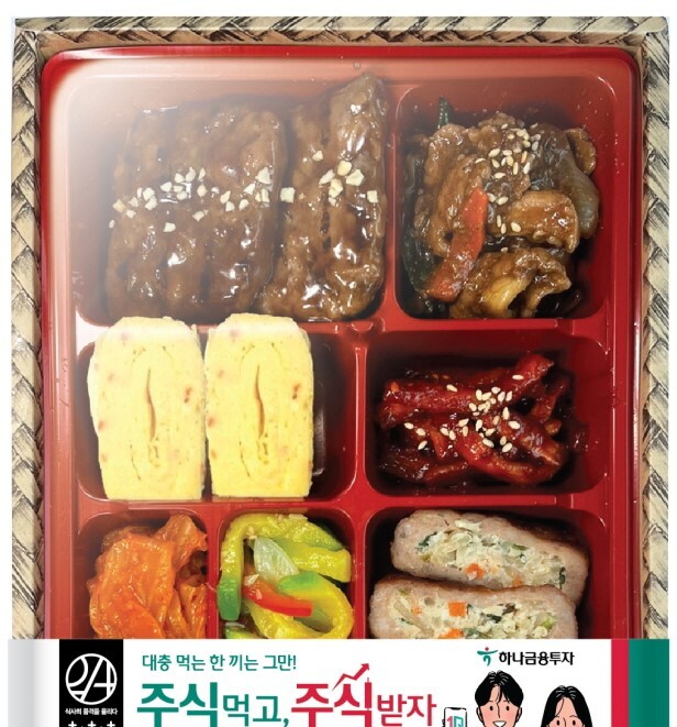 주식 제공 이벤트 외에도 이마트24는 도시락 본연의 맛에도 신경을 썼다. 한정식 정찬 콘셉트로 메인메뉴 떡갈비와 간장불고기볶음을 비롯해 계란구이, 고기말이, 애호박, 김치, 무말랭이 등 7가지 반찬으로 구성됐다.
