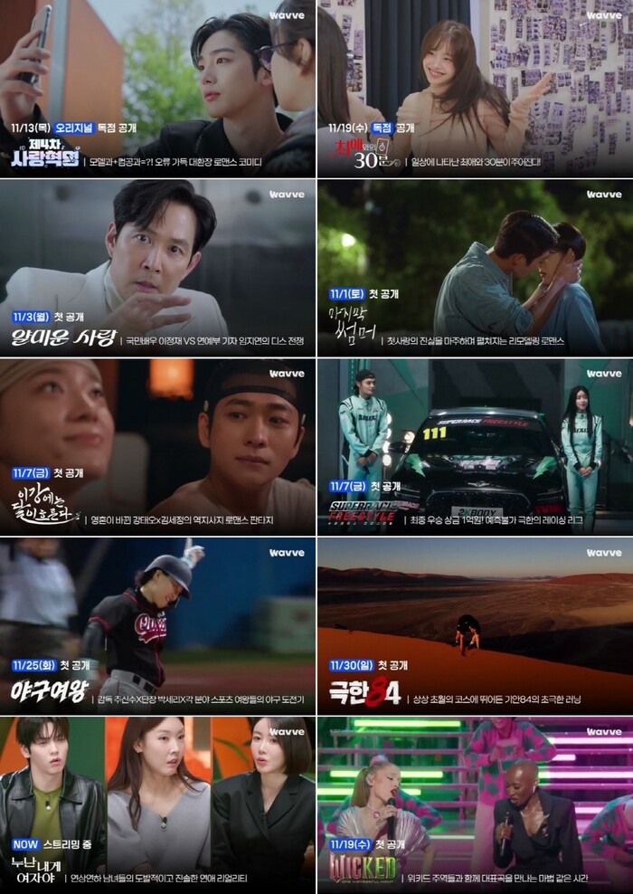 [메가경제=김지호 기자] 웨이브(Wavve)가 11월 ‘먼슬리 웨이브’ 영상을 통해 다채로운 신규 콘텐츠를 공개했다. 웨이브에서만 만날 수 있는 오리지널 드라마와 예능을 비롯해, 도파민을 자극할 스포츠·연애 예능, 신작 드라마와 해외시리즈까지 풍성한 라인업으로 무장했다.