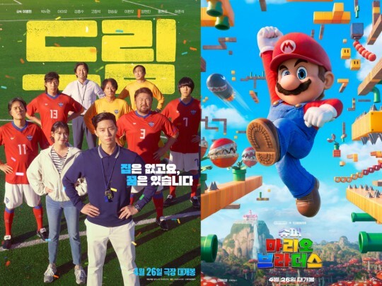 27일 영화진흥위원회 영화관입장권 통합전산망 집계에 따르면, 전날 개봉한 '드림'은 9만 3420명을 동원하며 일별 박스오피스 1위에 올랐다. '슈퍼 마리오 브라더스'는 8만 9693명으로 2위였다. 매출액 기준으로는 '슈퍼 마리오 브라더스'(7억 7260만원)가 1위, '드림'(7억 4370만원)이 2위였다.