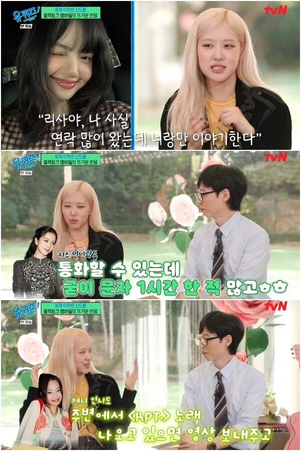 로제는 11일 방송한 tvN '유 퀴즈 온 더 블럭'에 출연해 유재석, 조세호와 유쾌한 토크로 웃음과 감동을 선사했다.