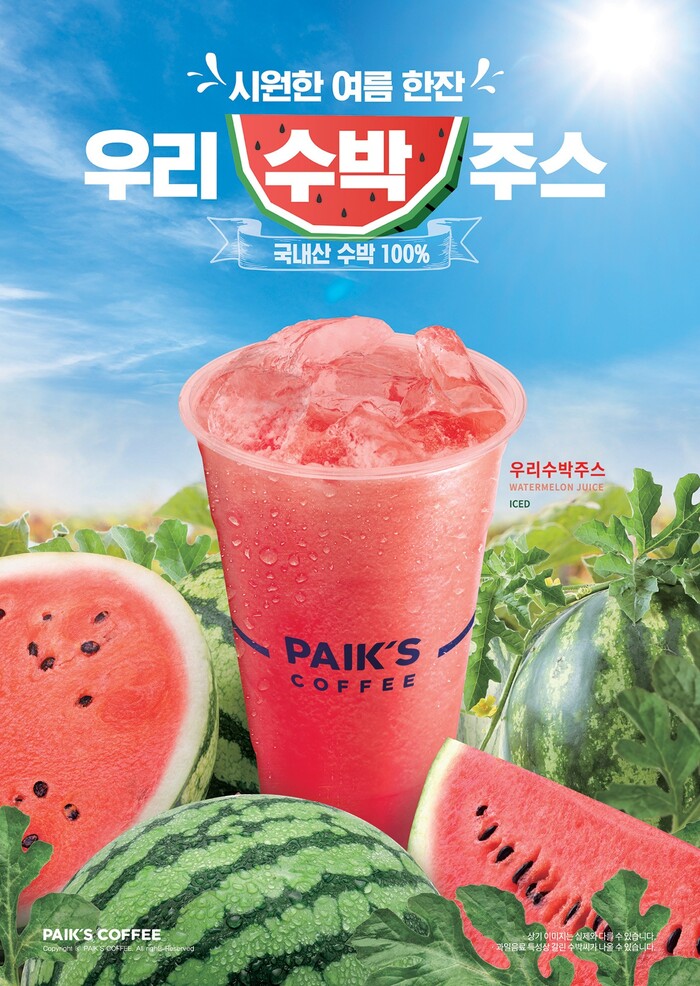 이 같은 실적은 국내산 수박만을 사용하는 차별화된 원재료 정책과, 폭염에 따른 수박 가격 급등에도 불구하고 소비자들이 합리적인 가격에 대용량 음료를 즐길 수 있다는 점이 작용한 것으로 분석된다.