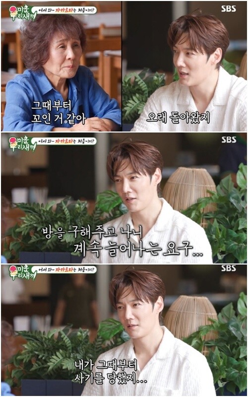 | ▲최진혁과 모친이 자카르타 팬미팅에 동행해 과거 최진혁이 사기 당했던 때를 떠올리며 대화를 나누고 있다. [사진='미우새' 방송 갈무리] |