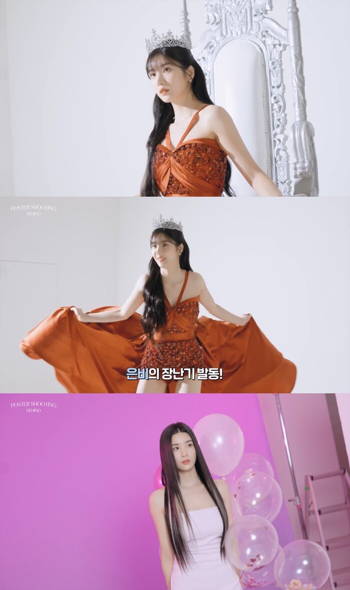 두 번째 착장으로 길게 늘어뜨린 생머리에 새하얀 미니 원피스를 입고 등장한 권은비는 하트로 가득찬 풍선을 들고 색다른 매력을 뽐냈다. '루비(권은비 공식 팬클럽명) 퀸'이라는 문구의 리본과 폭죽, 선물 상자 등 소품을 활용해 다채로운 포즈와 사랑스러운 표정 연기를 펼치는 그의 요정 같은 자태가 절로 감탄을 자아냈다.