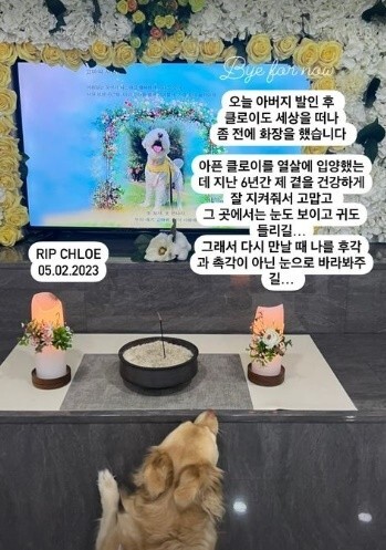 서동주는 2일 자신의 인스타그램을 통해 "오늘 아버지 발인 후 클로이도 세상을 떠나 좀 전에 화장을 했다"는 소식을 전했다.