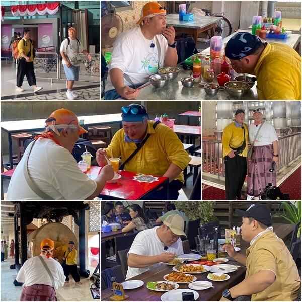 첫 끼를 푸짐하게 마무리한 김준현-문세윤은 자카르타 필수 코스인 ‘이스티크랄 모스크’ 사원에도 들렀다. 여기서 땀을 뻘뻘 흘리며 육수(?)를 뽑아낸 김준현과 달리, 문세윤은 이슬람 사원 방문에 걸맞게 치마 패션을 선보여 시선을 강탈했다. 이후, 두 사람은 첫날의 대미를 장식할 ‘먹방’ 스폿인 해산물 식당으로 달려갔다. 인도네시아 특유의 해산물 요리를 한상 펼쳐두고 둘만의 야심찬 ‘저녁 먹방 파티’를 연 두 사람은 ‘네버엔딩 먹방’으로 모두의 ‘엄지 척’을 유발했다는 후문이다.
