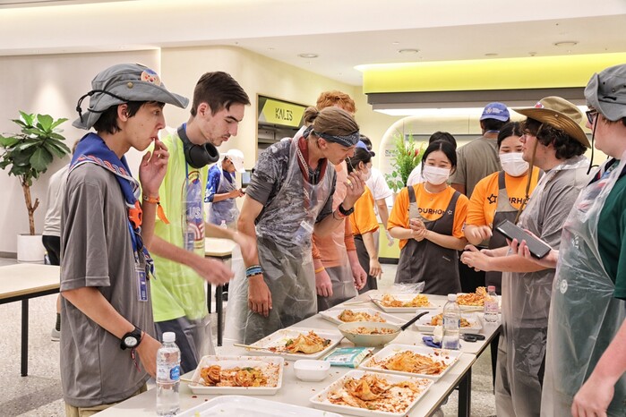 이에 아워홈은 9일 잼버리 참가자를 대상으로 마곡 본사 및 인근 아워홈 운영 사내식당에서 점심을 제공했다. 영지를 떠나 스카우트 투어 프로그램을 진행 중인 미국, 유럽 등 약 1000명의 잼버리 대원 및 요원이 참석했다.