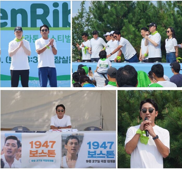 실제로, 지난주 9일 잠실 한강공원에서 진행된 제17회 그린리본마라톤 페스티벌에 대한민국 첫 국가대표 마라토너들의 극적인 실화를 담은 '1947 보스톤'의 주역 하정우와 강제규 감독, 장원석 대표가 깜짝 등장해 모두를 놀라게 만들었다.