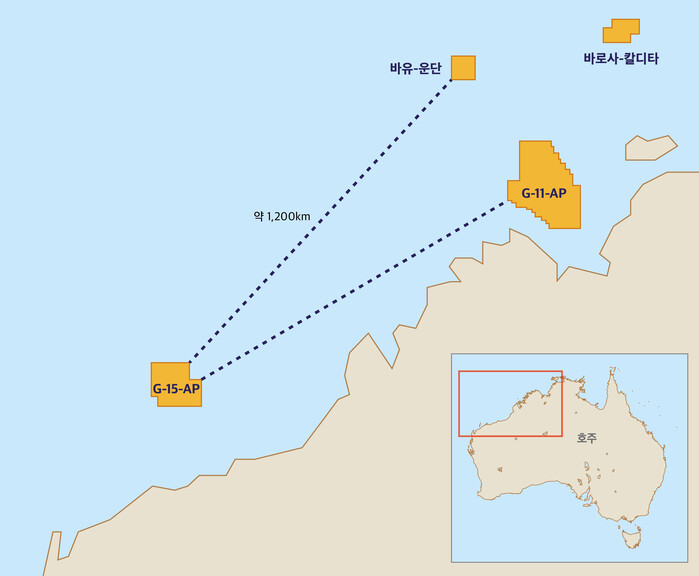 ▲ 호주 북부 해상 카나르본 분지 G-15-AP 광구 위치 [사진=SK어스온]