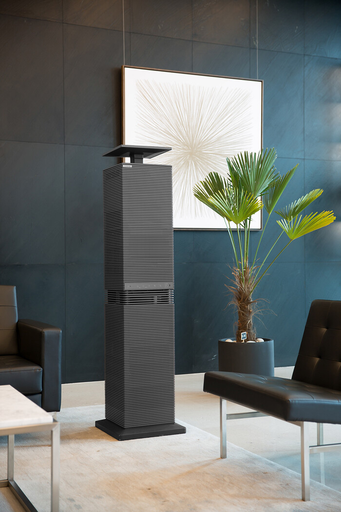 노블 공기청정기는 제품 상단 에어팝업부가 움직이며 공기 방향을 제어해 실내 공기를 효율적으로 관리할 수 있다. 상단부는 높은 곳에 부유하는 극초미세먼지를 집중 제거하며, 하단부는 바닥 근처의 미세먼지를 효과적으로 케어한다.