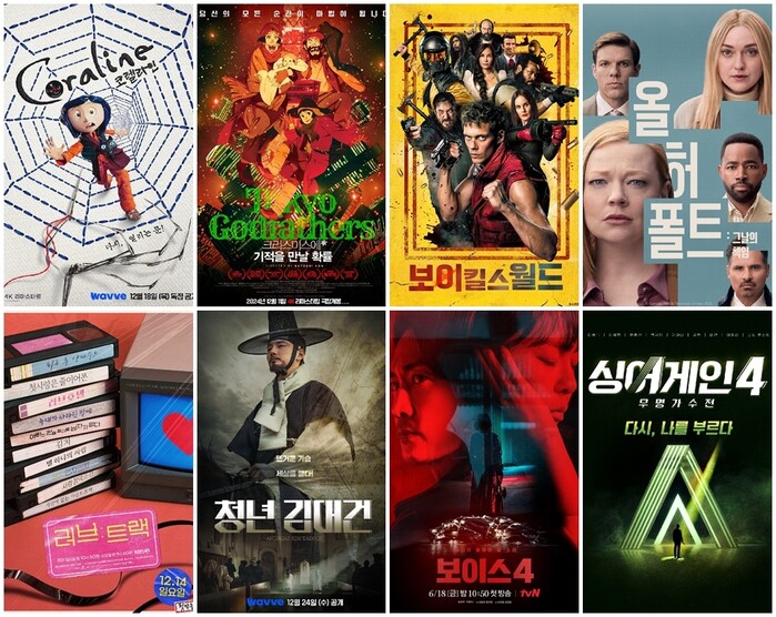 연말에는 임팩트 넘치는 영화로 짜릿한 밤을 보내는 것도 하나의 방법이다. 웨이브에서 OTT 독점 공개 중인 영화 ‘코렐라인’은 바쁜 부모님으로 인해 외로운 나날들을 보내던 코렐라인이 새로 이사한 집에서 발견한 비밀의 문을 통해 꿈에 그리던 ‘다른 세계’와 단추눈의 ‘다른 부모’를 만나면서 벌어지는 환상적인 모험을 그린 다크 판타지 애니메이션이다. 4K 리마스터링 버전이 지난 10월 22일 국내 재개봉했으며, 2025년 개봉된 모든 재개봉 애니메이션 가운데 흥행 1위를 차지하며 인기를 입증했다. 감성과 상상력이 풍부한 ‘어른이’들의 취향을 저격하는 ‘코렐라인’ 4K 리마스터링 버전은 웨이브에서만 시청 가능하다.