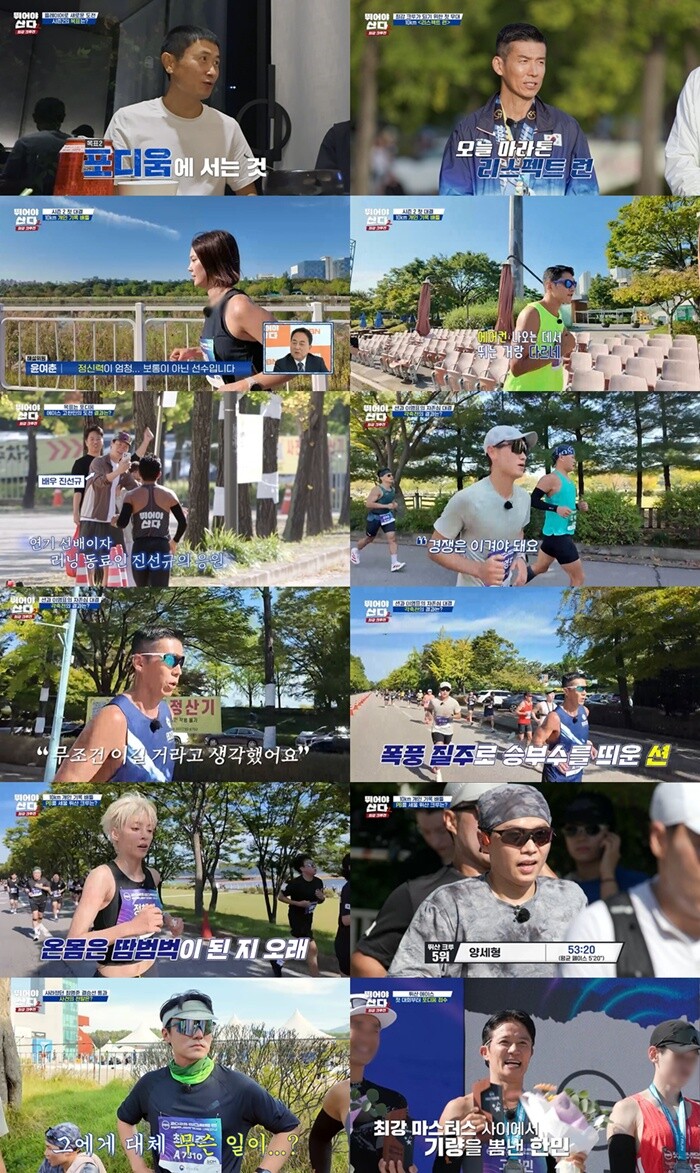 경기 중반부, 뜻밖의 해프닝도 발생했다. 최영준이 출발 직후 자신의 ‘러너캠’과 엇갈려 카메라 없이 혼자 달리는 ‘고스트 러닝(?)’ 사태가 벌어진 것. 제작진과 중계진이 그의 모습을 찾지 못해 긴장감이 돌았지만, 그는 묵묵히 달려 54분 07초로 결승선을 통과했다. 대회를 마친 그는 “나만 카메라가 없어서 제가 완주한 걸 못 믿는 분들도 있었다”며 자신의 완주 메달을 직접 인증해 짠내 웃음을 자아냈다.