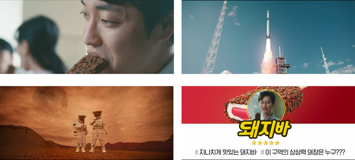 TV에는 일부 내용만 담은 15초 분량이 담겼고, 롯데푸드 유튜브 채널에서 어떤 과정을 통해 돼지바가 화성으로 이어지는지 전체 영상을 확인할 수 있다.