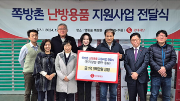 [메가경제=주영래 기자] 롯데장학재단(이사장 장혜선)이 본격적인 혹한기를 앞두고 훈훈한 나눔을 실천했다. 롯데장학재단은 지난 11일(수) 서울 영등포 쪽방촌에서 △전기장판 765개 △등유 18,600L(2,500만원 상당) △연탄 2,000개(190만원 상당) 등 총 1억 300만원 상당의 난방용품 및 연료를 지원하는 전달식을 열었다.