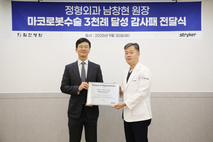 한국스트라이커는 힘찬병원이 2020년 국내 의료기관 중 선도적으로 마코로봇(Mako SmartRobotics) 시스템을 도입한 이후, 남 원장이 3,000례 이상 로봇 인공관절 수술을 시행하며 첨단 수술기법의 우수성을 널리 알린 점을 높이 평가했다고 밝혔다.
