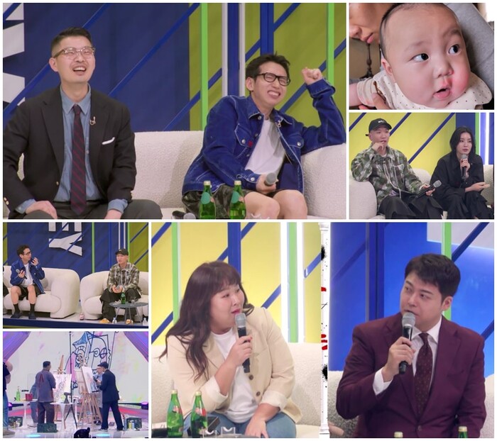 특히 ‘생후 6개월’인 연둣빛고등어 작가의 아이가 발도장을 찍는 모습이 포착되자, 개코와 봉태규는 “시간이 지나면 저 때가 너무 그립다. 아기들의 냄새에 얼굴을 파묻던 시절”이라며 ‘아빠미소’를 폭발시킨다. 이후로도 개코와 봉태규는 “5~6세의 딸들이 오로지 ‘공주’를 그리고 만든다”, “평소에도 아이들이 그린 그림을 액자에 잘 걸어두는 편”이라고 육아 토크를 끊임없이 가동한다. 결국 이를 듣던 MC 전현무와 아트 큐레이터 김민경은 “전혀 공감이 안 된다, 우리가 모르는 세상”이라고 한탄(?)해 짠내를 자아낸다.