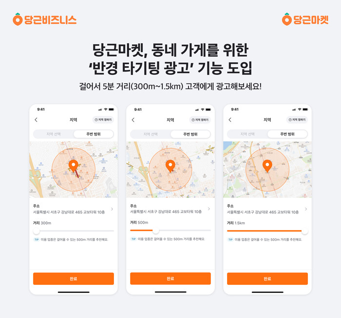 ▲당근마켓이 반경 300미터 모객 극대화 가능한 '하이퍼 로컬 광고'를 출시했다[사진=당근마켓] |