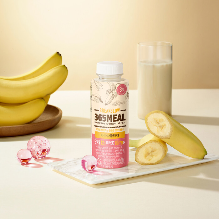 ‘365meal 바나나 콜라겐’은 1,000Da 이하의 ‘저분자피쉬콜라겐’ 3%를 함유, 몸 속의 부족한 콜라겐을 간편히 섭취할 수 있으며, 결합조직 형성과 기능 유지 및 항산화 작용을 하여 유해산소로부터 세포를 보호하는데 필요한 비타민C 85mg을 포함한 것이 특징이다.