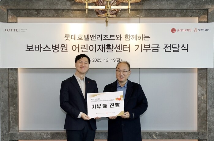 이번 기부는 캐릭터 객실 판매 수익금 일부를 적립해 전달한 것으로, 고객 참여형 나눔 활동이라는 의미가 더해졌다. 전달식에는 보바스병원 윤연중 병원장, 롯데의료재단 강성두 사무국장, 롯데호텔앤리조트 이정주 마케팅본부장 등이 참석했다.