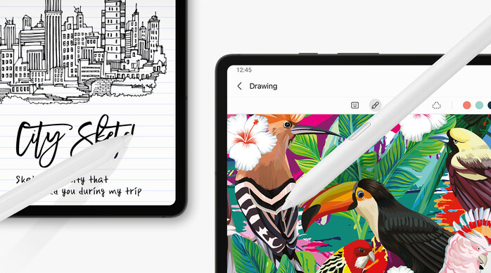 드로잉에 최적화된 'S펜 크리에이터 에디션'은 향상된 기울기 감도를 통해 획 마다 미묘한 차이를 만들어 세밀한 표현이 가능하다. 드로잉 작업을 하다가 메모 작성시에도 펜 교체나 펜 팁 교환 없이 바로 쓸 수 있어 편리함을 더했다.