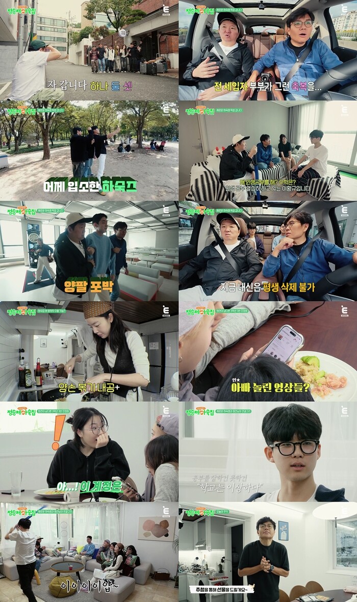17일 방송된 티캐스트 E채널 예능 프로그램 ‘인생 때려잡기: 정승제 하숙집’(이하 ‘정승제 하숙집’) 4회에서는 짧은 시간 동안 깊은 정을 나눴던 1기 하숙생들과의 이별과 함께, 개성 넘치는 2기 하숙생들을 맞이하는 정승제·정형돈·한선화의 모습이 그려졌다.
