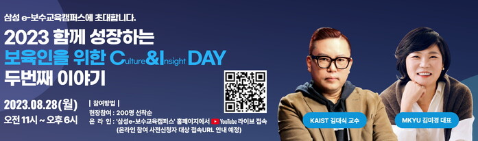 강연은 이벤터스 홈페이지를 통해 참여 신청할 수 있으며, '삼성e-보수교육캠퍼스' 홈페이지에서 유튜브 라이브로 접속 가능하다.