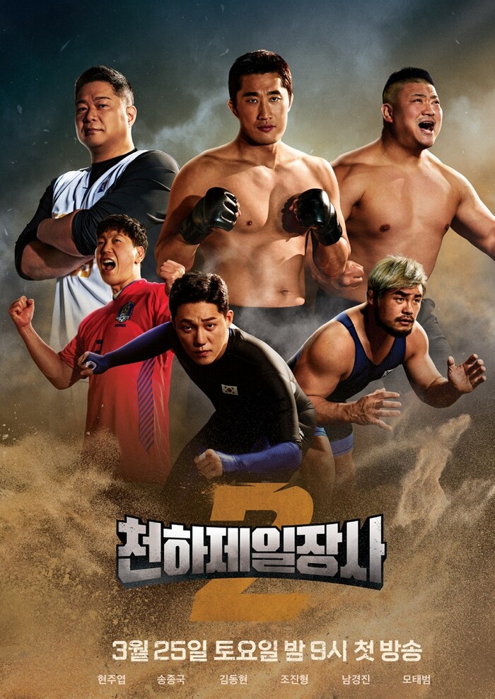 오는 25일(토) 밤 9시 ‘천하제일장사2’가 첫 방송하는 가운데, 강렬함이 화면을 뚫고 나오는 공식 포스터가 전격 공개돼 방송을 기다리는 시청자들에게 웅장한 두근거림을 선사한다.