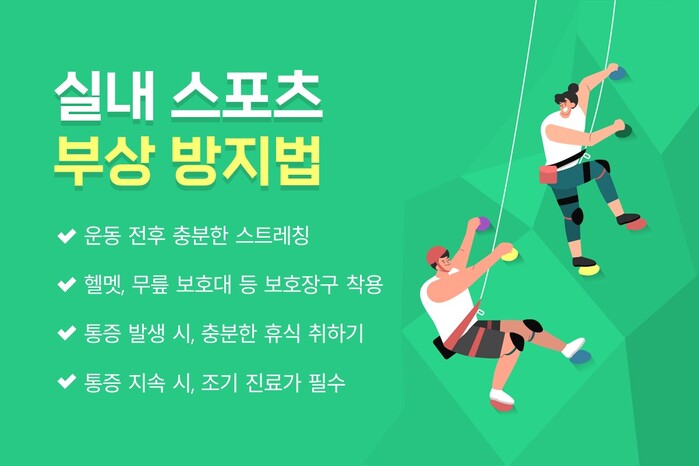 [메가경제=주영래 기자] 겨울철 한파나 폭설 등 궂은 날씨를 피해 날씨에 관계없이 즐길 수 있는 실내 스포츠가 인기다. 스크린 골프, 실내 클라이밍, 실내 익스트림 스포츠 등과 같이 건강과 재미를 동시에 챙길 수 있는 실내 스포츠는 야외 운동의 묘미를 대신할 수 있다. 다만 실내 스포츠가 야외에 비해 안전하다고 생각해 방심하기 쉽지만 오히려 제한된 공간과 반복적인 동작들로 근육과 관절에 무리가 올 수 있어 부상과 안전사고에 주의가 필요하다.