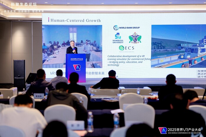 [메가경제=양대선 기자] 남서울대학교 가상‧증강현실학과 Robert Jackson Dean 교수가 10월 20일 중국 장시성 난창(Nanchang)에서 열린 ‘2025 세계 VR 산업대회(2025 World Conference on VR Industry)’의 공식 프로그램 중 하나인 ‘KMAX Ecological Forum’(주관: Jiangxi Kmax Industrial Co., Ltd.)에 초청 기조연사로 참여하여 발표를 진행했다.