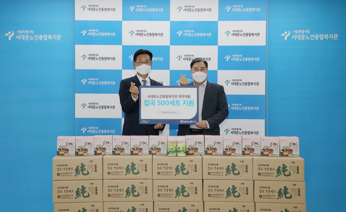 NH농협카드(사장 신인식)가 지난 12일 가정의 달을 맞아 서울 서대문구 소재 서대문노인종합복지관에 취약계층을 위한 잡곡 1kg 500세트를 전달했다고 밝혔다.
