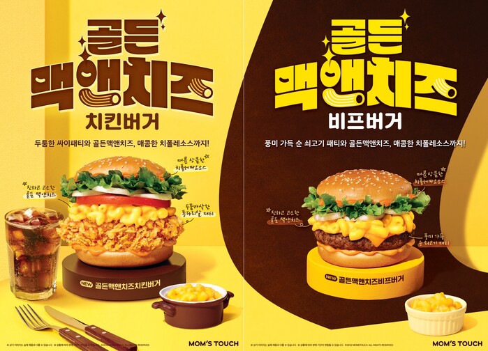 ▲맘스터치가 골든맥앤치즈버거 2종을 출시했다[사진=맘스터치] |