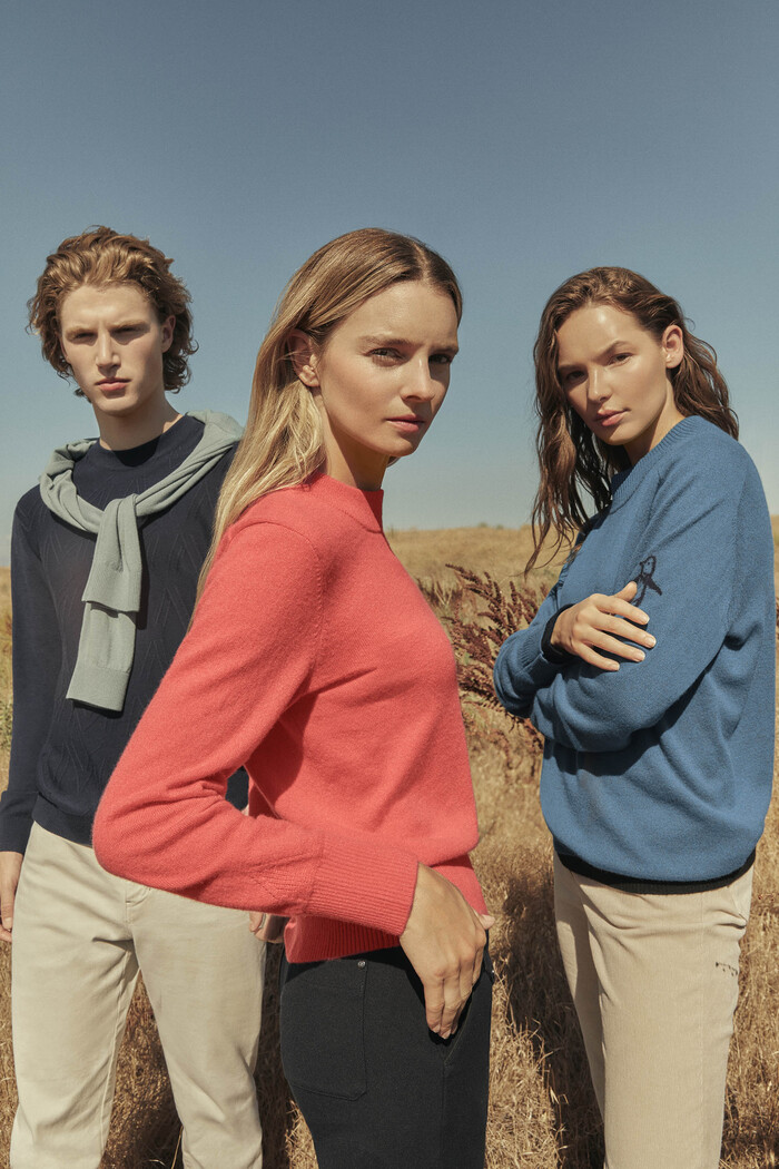 주력제품인 남녀용 ‘캐시미어 스웨터’는 유러피안 하이엔드 소재의100% 캐시미어 소재이다. 밀도 높은 하이게이지 캐시미어 직조 원단을 사용해 얇은 두께감에 가벼운 착용감이 장점이다. 고급 캐시미어가 자아내는 볼륨감 사이로 생긴 공기층 덕에 부드러운 촉감 뿐 아니라, 보온성도 우수하다. 목까지 살짝 올라오는 반목 디자인으로 가을 겨울 찬 바람을 막아주며 다채로운 컬러감으로 포인트 룩으로 제격이다.