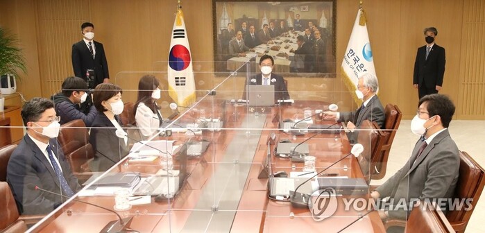 | ▲ 주상영 금융통화위원(의장 직무대행)이 14일 오전 서울 중구 한국은행에서 열린 금융통화위원회 본회의를 주재하고 있다. [사진=연합뉴스 제공] |