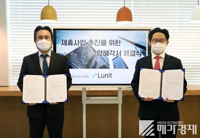 [메가경제=황동현 기자] 신한생명(대표 성대규)은 18일 서울 중구에 위치한 신한생명 본점에서 의료 인공지능 기업인 루닛(대표이사 서범석)과 디지털 헬스케어 사업 추진을 위한 업무제휴 협약(MOU)을 체결했다고 밝혔다.