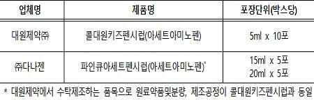 식약처는 지난 17일 콜대원키즈펜시럽과 동일한 방법으로 제조되는 다나젠 ‘파인큐아세트펜시럽’에 대해서 이 같은 처분을 내렸다고 18일 밝혔다.