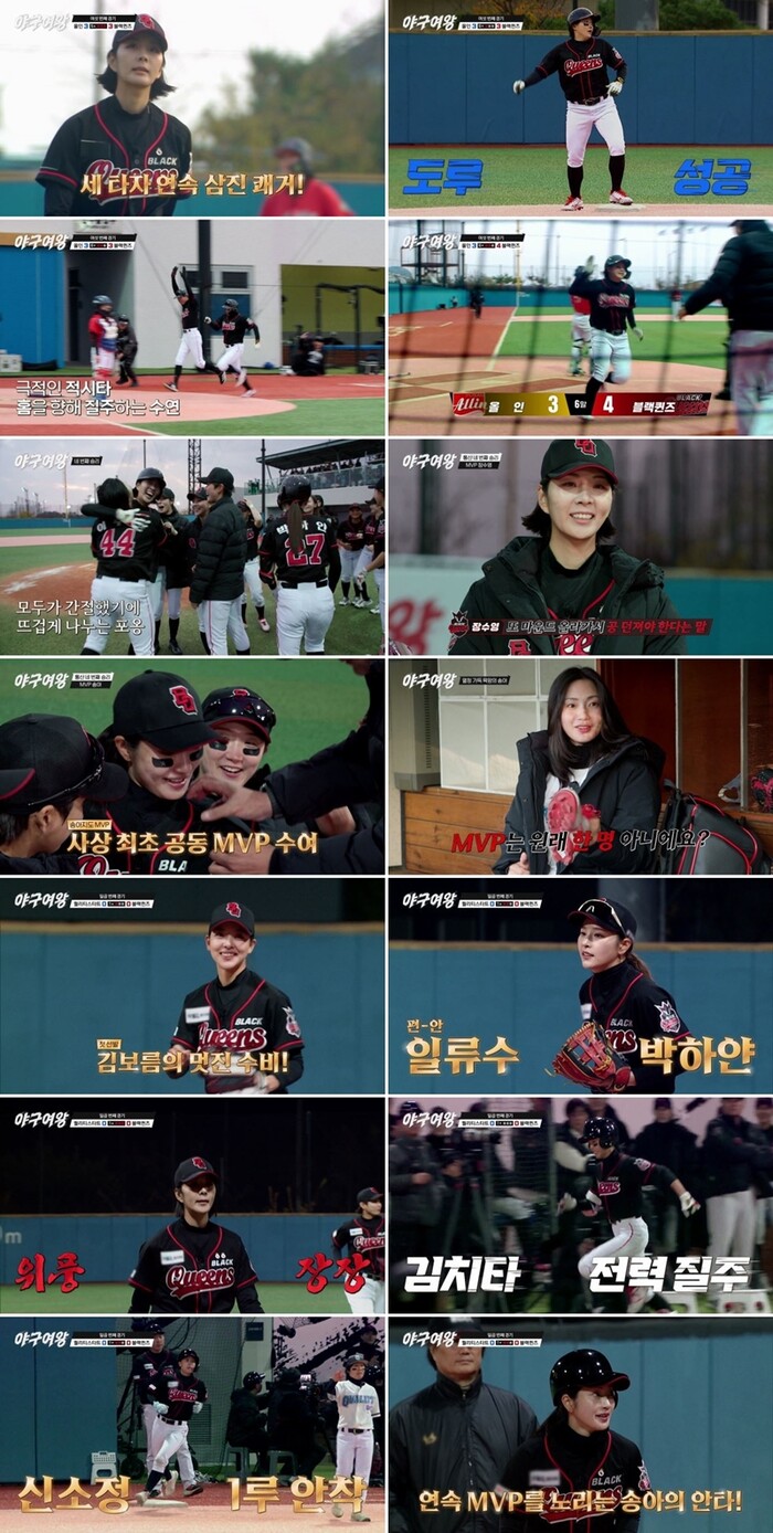 3일 방송된 채널A ‘야구여왕’ 11회에서는 ‘레전드 선출’ 김민지-김보름-김성연-김온아-박보람-박하얀-송아-신소정-신수지-아야카-이수연-장수영-정유인-주수진-최현미가 뭉친 국내 50번째 여자 야구단 블랙퀸즈가 영남권 여자 야구 리그에서 3년 연속 우승·준우승을 차지한 올인과 여섯 번째 정식 경기를 치르는 현장이 공개됐다. 이날 블랙퀸즈는 올인과의 초박빙 접전 끝에 장수영의 끝내기 안타로 드라마틱한 승리를 거뒀으며, 곧바로 국가대표 선수들이 포진한 ‘초강팀’ 퀄리티스타트와 7차전에 돌입하는 모습으로 시청자들을 극강 몰입시켰다.
