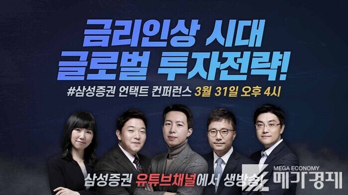 [메가경제=황동현 기자] 금리상승으로 주식시장이 조정을 받고 있는 가운데, 삼성증권은 주식투자 방향성을 잡기 어려운 투자자들을 위해 3월 31일 '삼성증권 Untact 컨퍼런스'를 개최한다고 밝혔다.