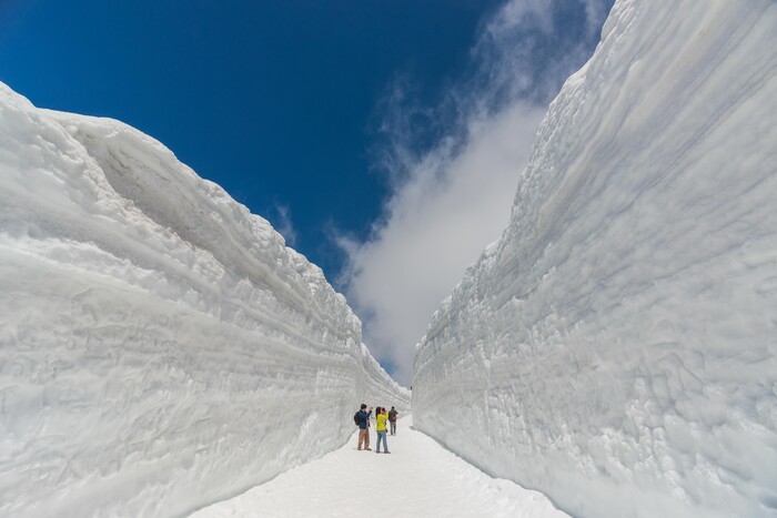 해발 2450m 무로도 지역에서는 4월 15일부터 6월 25일까지 1년에 단 두 달간 ‘눈의 대계곡’ 설벽 체험이 가능하다. 겨우내 쌓인 눈이 도로 양옆으로 형성되며 최대 20m 높이의 설벽 사이를 직접 걸어볼 수 있다.