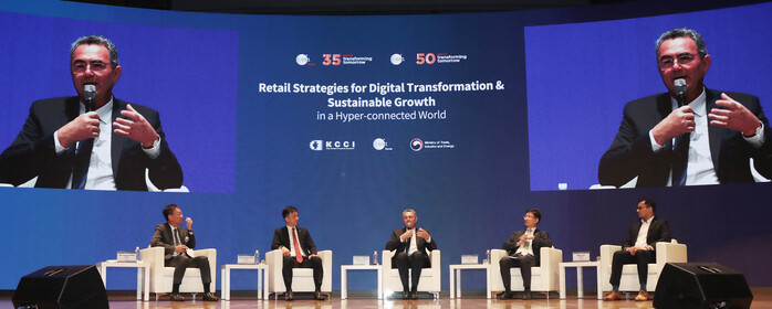 ▲ 르노 드 바르부아(Renaud de Barbuat) GS1 CEO가 참석자들과 토론을 하고 있다. [사진=대한상공회의소] |