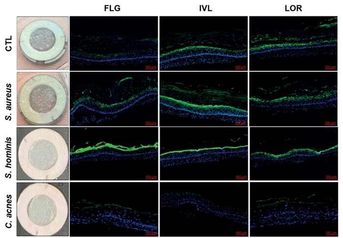 연구진은 피부 마이크로바이옴 기반 3D 인공피부 모델을 구축하고, 미생물별 피부 장벽 반응을 체계적으로 분석했다. 특히 피부 상재균인 황색포도상구균(Staphylococcus aureus), 스타필로코쿠스 호미니스(Staphylococcus hominis), 큐티박테리움 아크네(Cutibacterium acnes)가 피부 장벽 단백질 발현과 지질 합성에 미치는 차별적 영향을 규명했다.