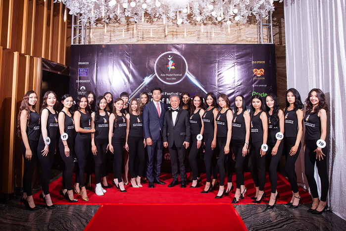| ▲ 아시아모델페스티벌조직위원회 양의식 회장(가운데)이 몽골 모델들과 기념촬영을 하고 있다. [사진=아시아모델페스티벌] |