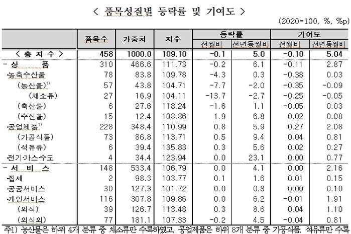 ▲ 품목성질별 등락률 및 기여도. [통계청 제공] |