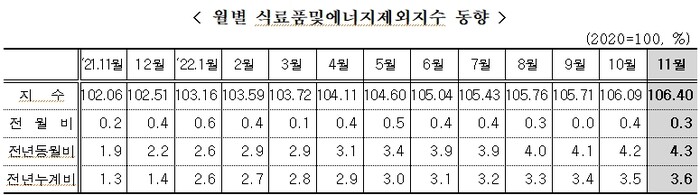 ▲ 식료품 및 에너지 제외 지수 동향. [통계청 제공] |
