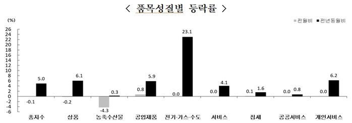 전기·가스·수도는 23.1% 상승해 전월(23.1%)과 같은 수준을 유지했다.